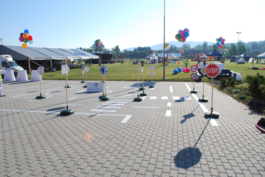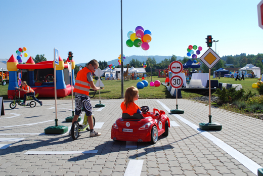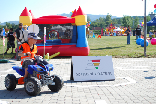 Velice oblíbená atrakce kde si děti vyzkouší jaké to je být řidičem. Dopravní značky, přechody pro chodce, kruhový objezd, stezka pro cyklisty, semafory, el. autíčka, el. čtyřkolky a koloběžky - to vše si děti můžou vyzkoušet na Vaší akci.